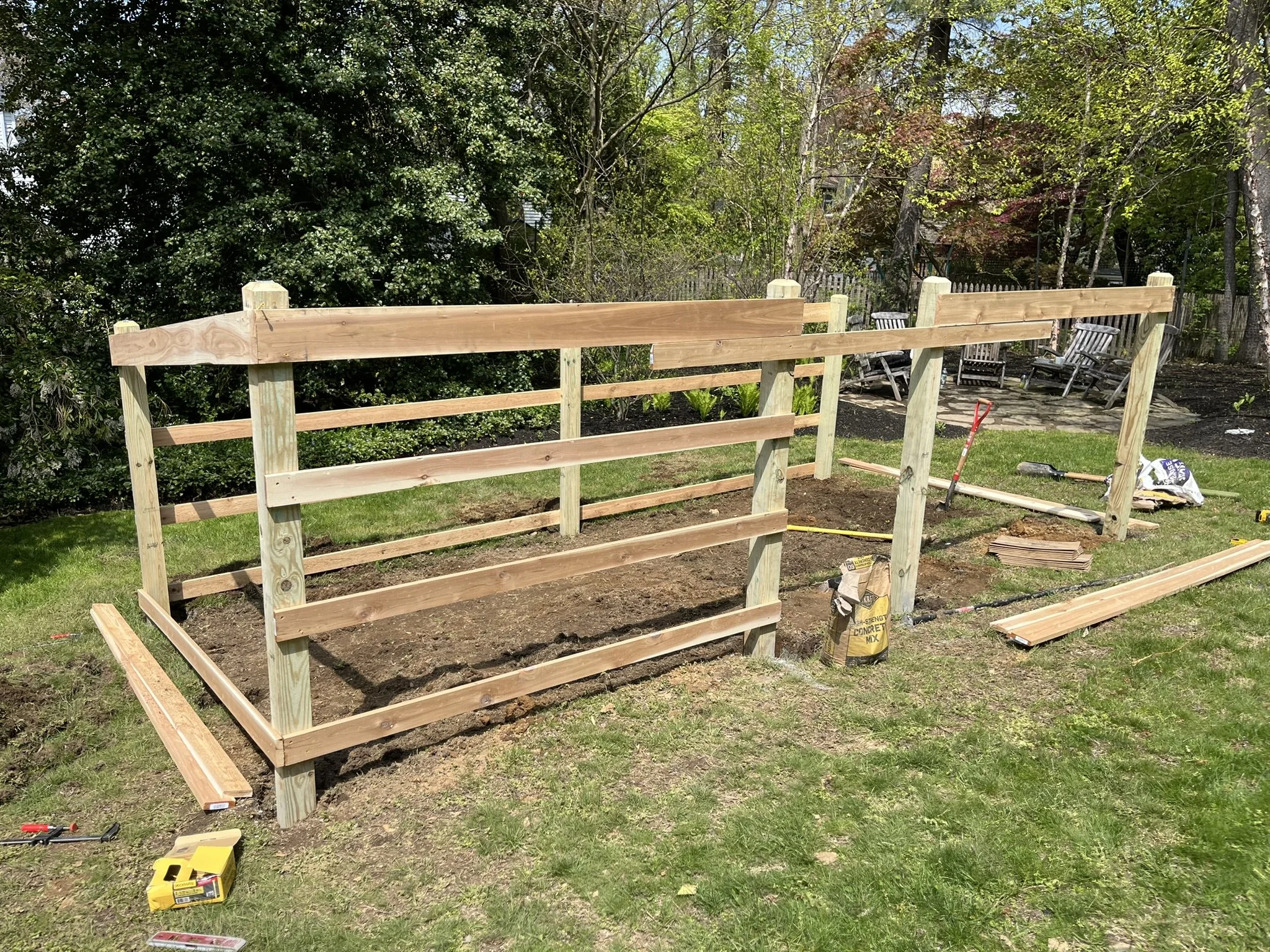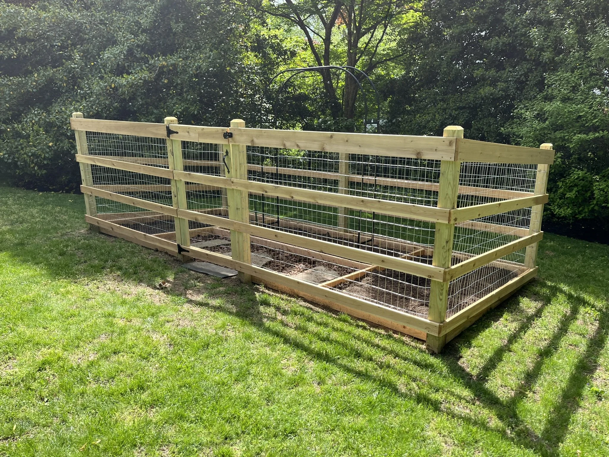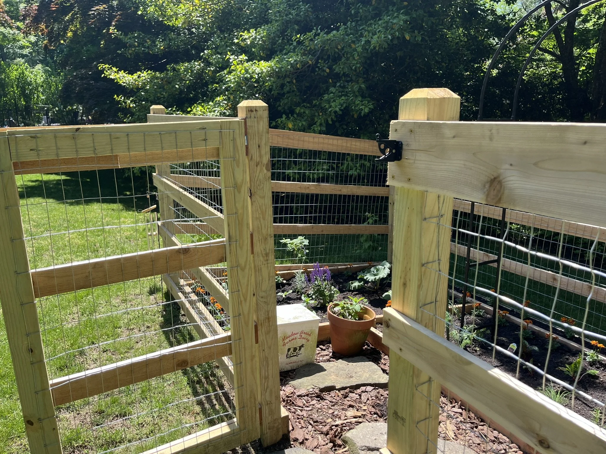 I’m really happy with how this custom vegetable garden turned out! The fully-enclosed, gated garden has welded wire fence that will keep out deer, rabbits, groundhogs, and other hungry vegetable thieves. It has three big raised beds for cut flowers, vegetables, and herbs, and a tall arch trellis for climbing beans and squashes. I worked with the homeowner on a companion planting plan that uses natural pest repellent plants like marigolds and nasturtium and pairs vegetables and herbs that helps each other grow.