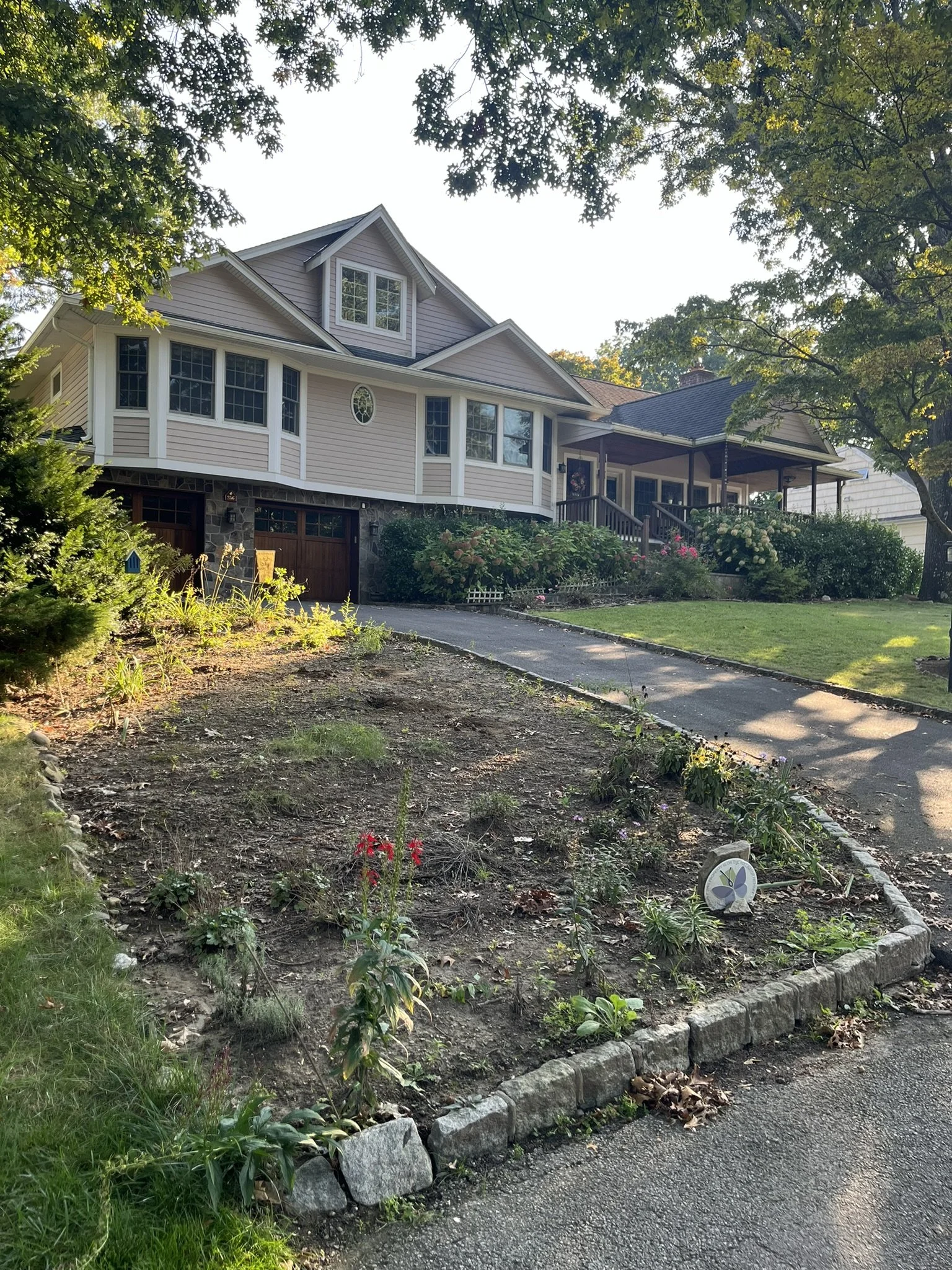 The planting plan centered on woodland perennials & shrubs which would be at home under an Oak tree. Northern Spicebush, Mapleleaf Viburnum and Fragrant Sumac form the backbone, with Cardinal Flower, Bluestemmed Goldenrod, a few varieties of Aster, and lots of native ferns and ground covers bringing a range of color and texture.