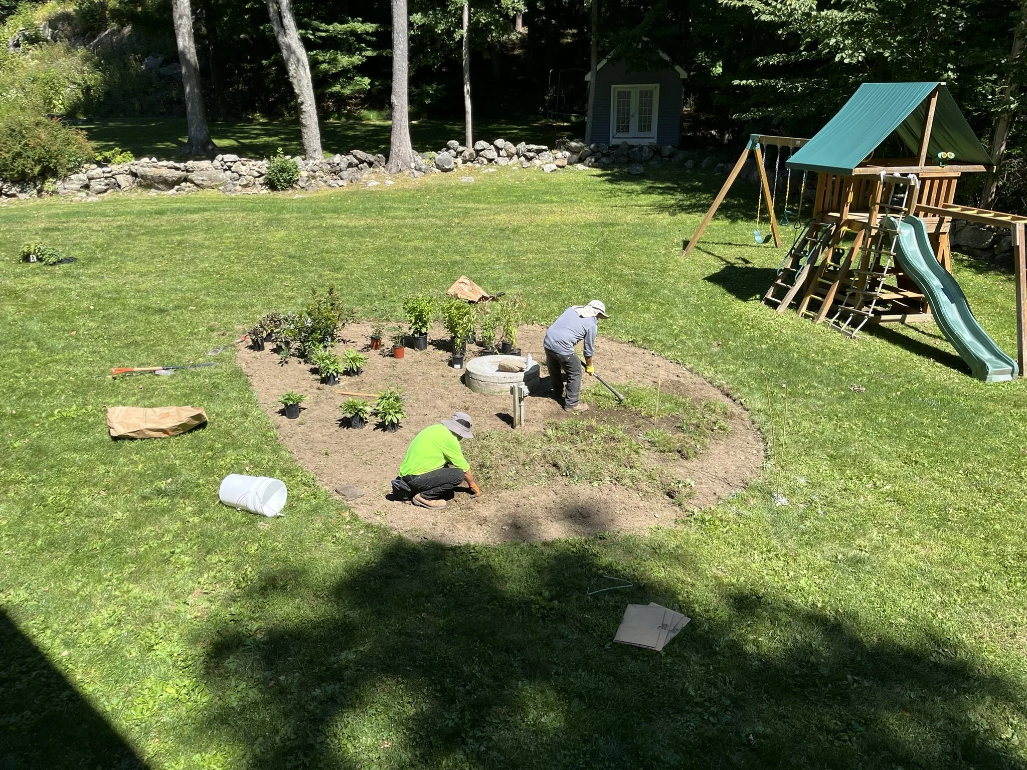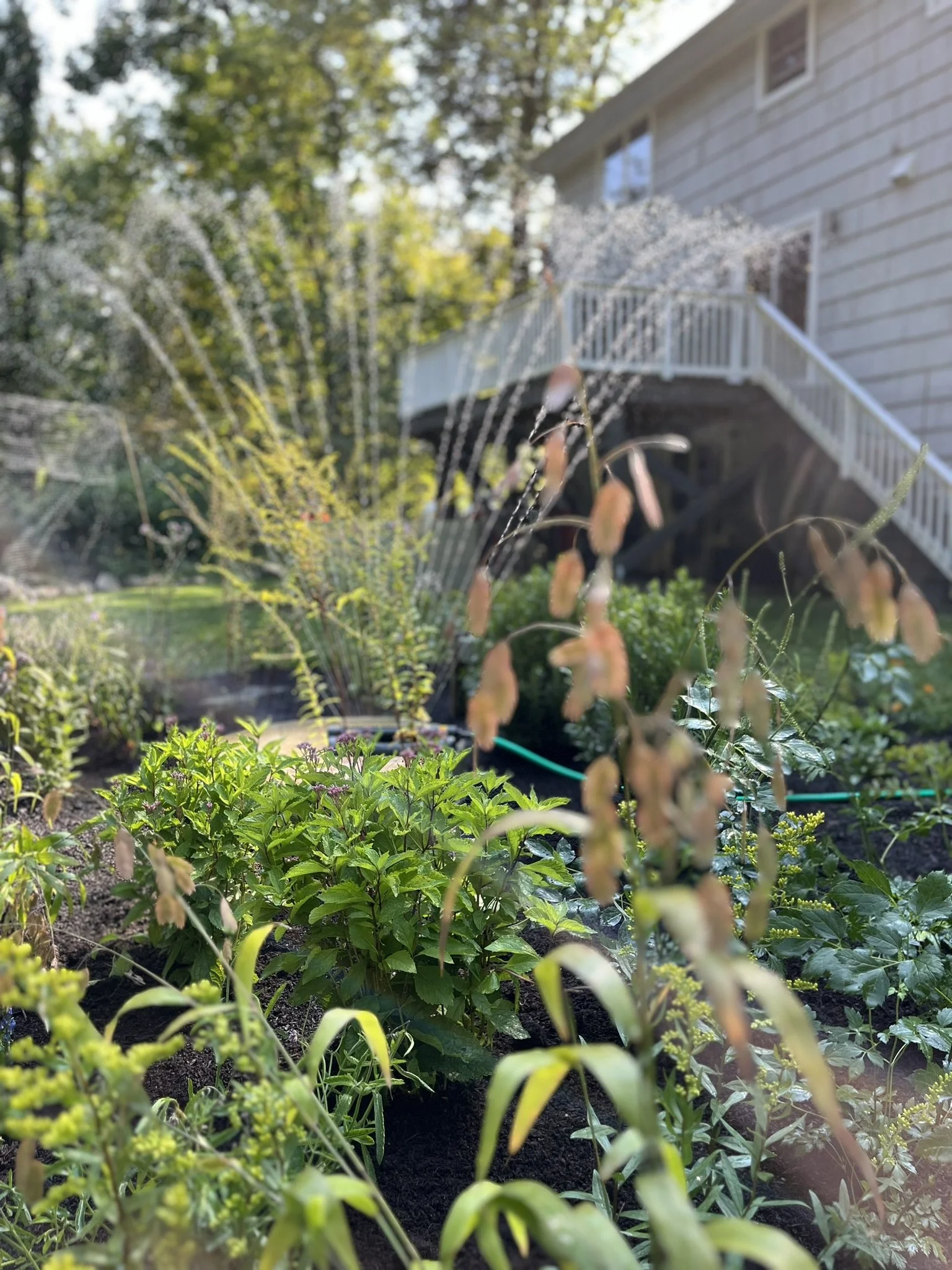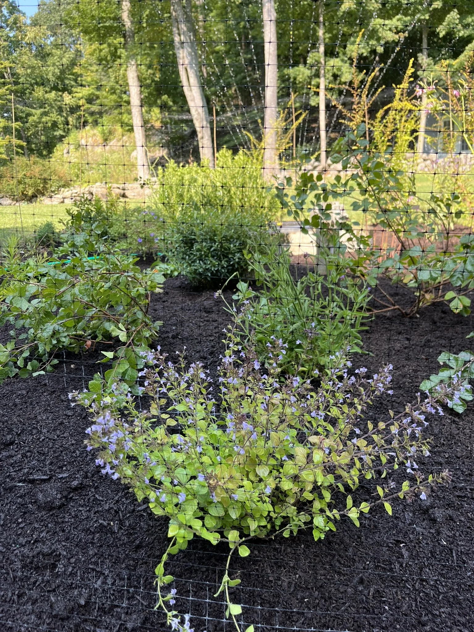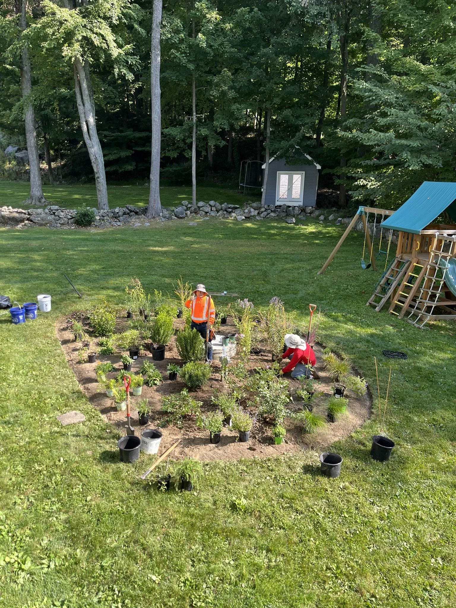 We built a 15’ x 30’ pollinator island to hide the cap and add some color and life to the yard. We also built a small privacy fence to hide an emergency generator.